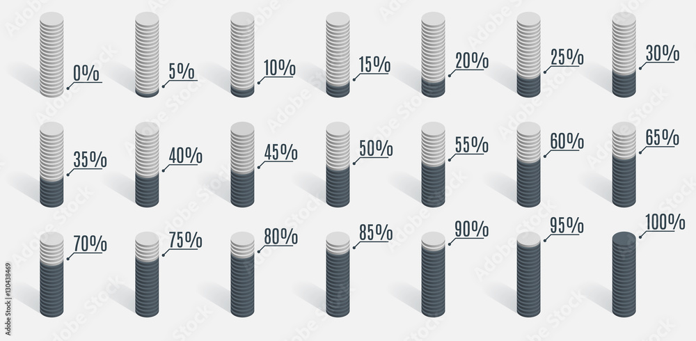 Set Of Gray Percentage Charts For Infographics 0 5 10 15 20 25 30 35 40 45 50 55 60 65 70 75 80 85 90 95 100 Percent Vector Illustration Stock Vector Adobe Stock
